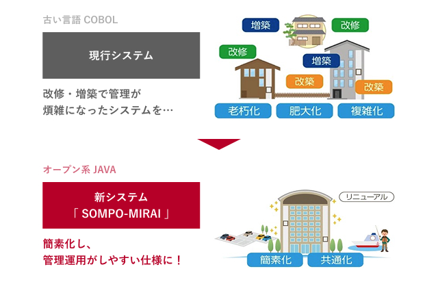 古くなり複雑化した基幹システムを刷新し、変化に強く柔軟な新システムを構築する、